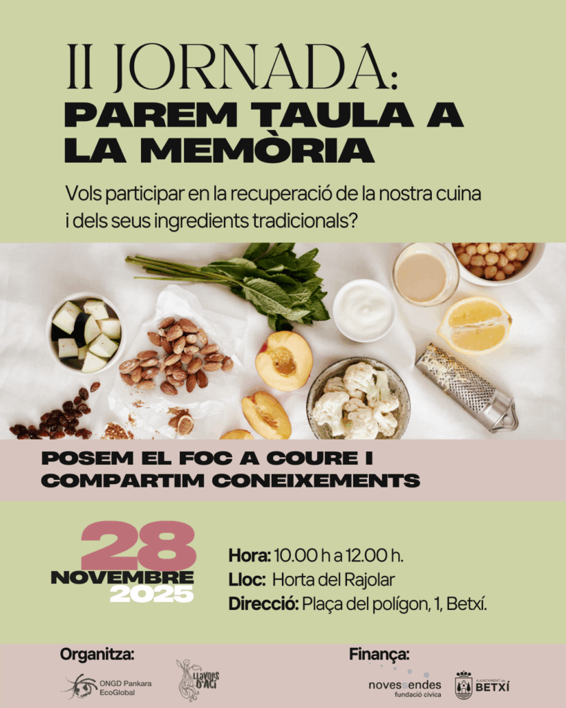 Aquesta activitat s’emmarca dins del projecte Activem Betxí i està organitzada per Llavors d’Ací i Pankara EcoGlobal, amb l’objectiu d’enfortir el patrimoni cultural i culinari local a través de la transmissió oral, la convivència i la recuperació de sabers populars.